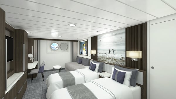 There are two Aurora Stateroom Triples featuring portholes, all with private en-suites. Located on Deck 3, they’re close to the mudroom and loading platforms.