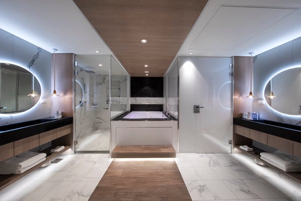 Positioned high above the bridge, these all-new suites offer panoramic views from front to back. And with over 2,500 square feet of indoor and outdoor opulence, Iconic Suites are also the most luxurious and largest in our fleet.