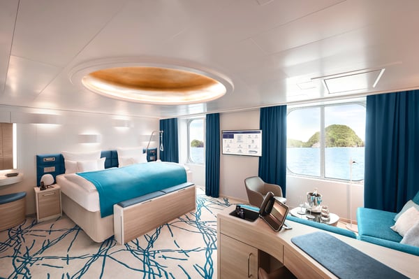 In the cabins and suites, curved lines, natural colours and premium materials come together in a harmonious room concept that promises – and delivers – pure relaxation.