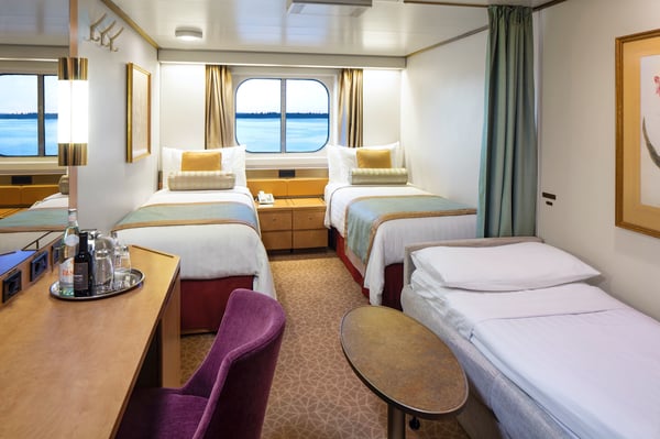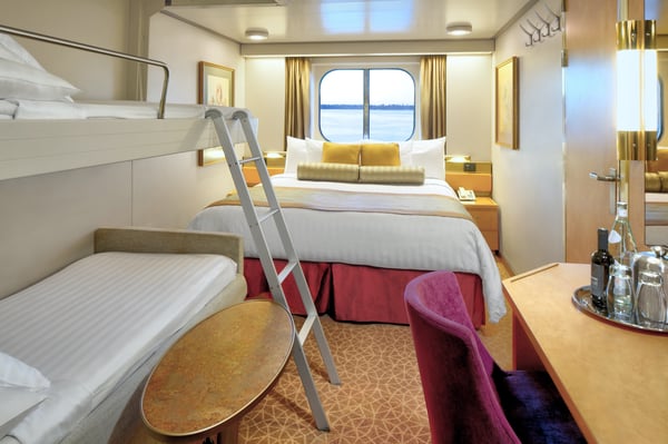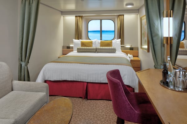 These staterooms feature a partial sea view and include two lower beds convertible to one queen-size bed—our signature Mariner’s Dream™ bed with plush Euro-Top mattresses, plus premium massage shower heads and a variety of amenities.