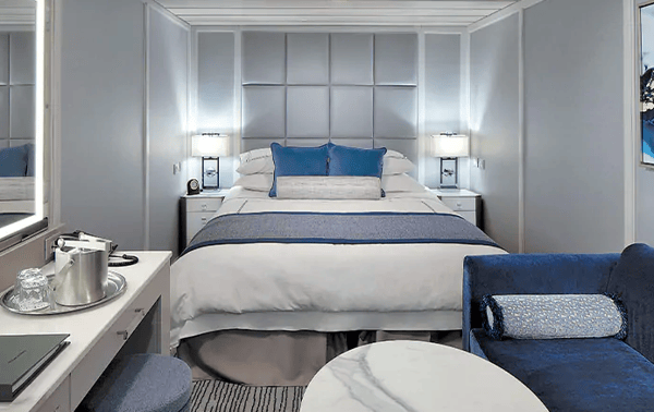 Elegant and comfortable, Inside Staterooms feature Oceania’s signature Prestige Tranquillity Bed, stylish furnishings and ample storage. Designed for relaxation, they provide a peaceful retreat after a day of exploration.
