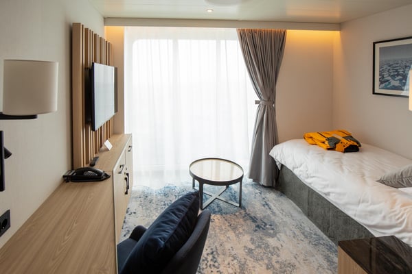 Ultramarine’s suites combine contemporary design with expedition-ready comfort. Light and inviting, they feature heated floors, spa-style bathrooms and smart storage for gear. Many offer private balconies or panoramic windows for breathtaking views. After a day of adventure, unwind in Scandinavian-inspired serenity with blackout curtains, premium toiletries, and high-speed WiFi, offering the perfect balance of luxury and exploration.