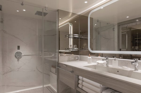 Elegant and light-filled, the Classic Veranda Suite features floor-to-ceiling glass doors opening onto a private balcony. Enjoy a queen-size bed, spacious sitting area, marble bathroom and Silversea’s hallmark butler service.