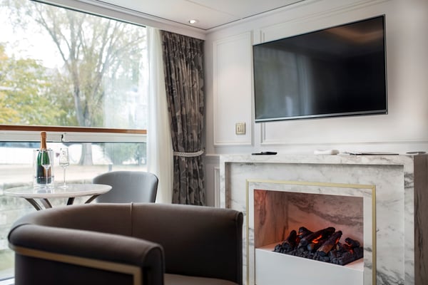 Luxurious riverview suite (506 sq ft – 47 sq m) with a spacious living room